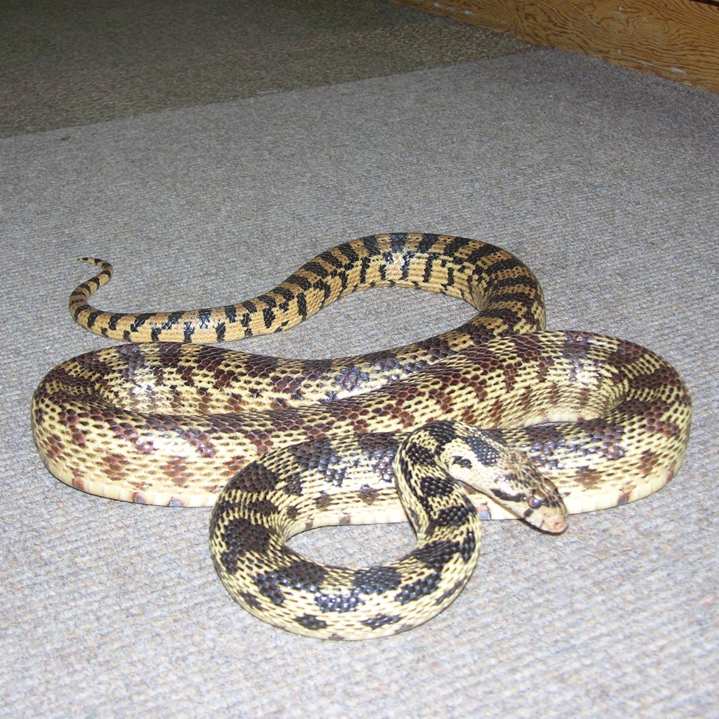 The Great Basin Gopher Snake is a subspecies of nonvenomous Gopher snake. It is found in parts of western United States and adjacent southwestern Canada and is often mistaken for the Prairie rattlesnake.