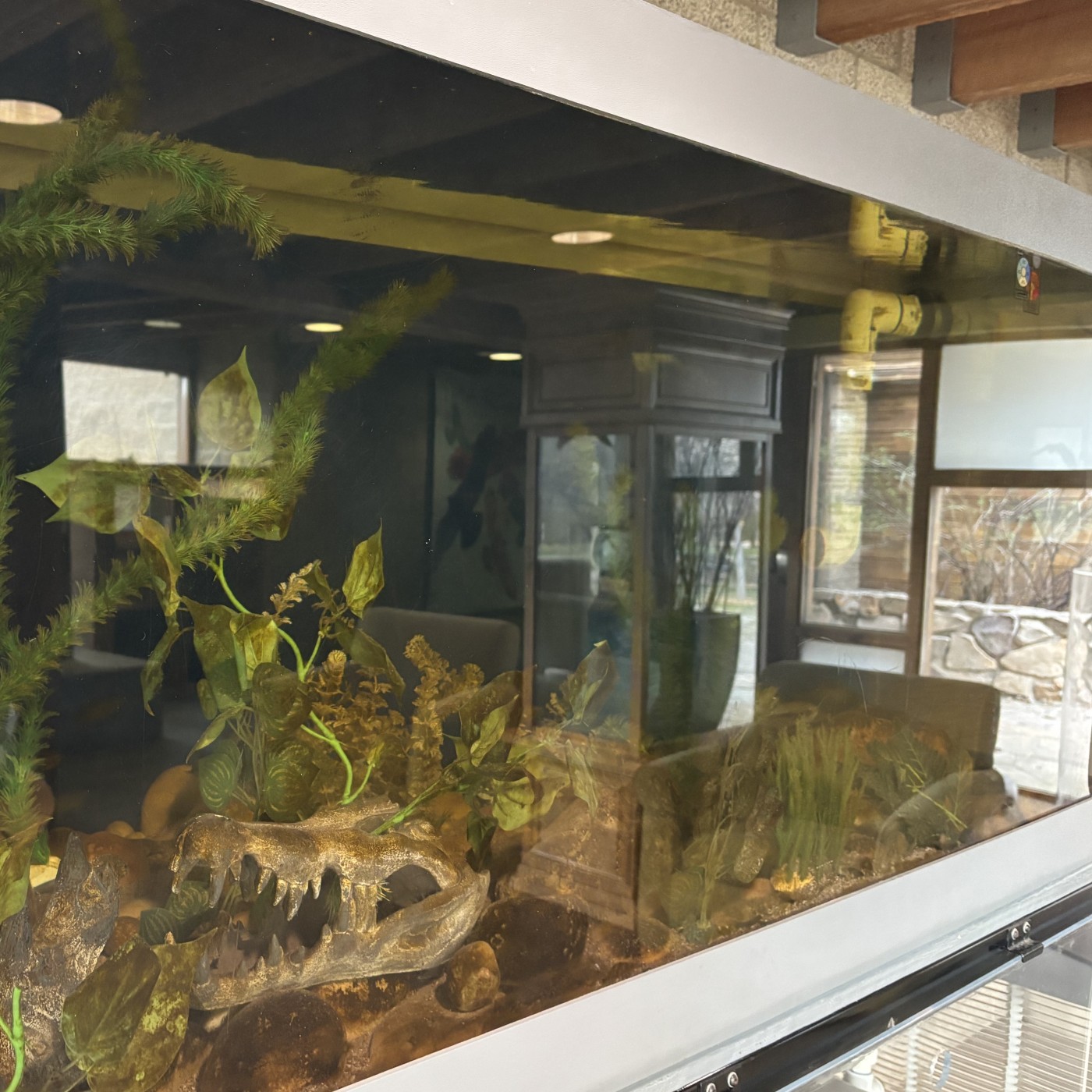 The aquarium set-up was the Senior project for Weber State University Engineering and Technology students.  Completion was in 2010. There are 8 to 10 Utah fish species living in the aquarium at any given time. All native Utah cold water fish: Speckled Dace, Long-nosed Dace, Red Shiners, Rainbow Trout, Utahn Chubs, Least Chub, Leatherside Chubs, Cutthroat Trout, and Mottled Sculpin.